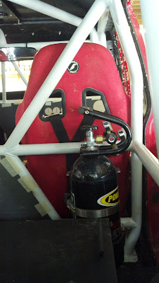 So we mounted it to 3/16" steel plate and welded it to the horizontal "B" pillar tube. Used 1" stock to connect it to the lower tubing and drilled holes in the same pattern as the Powertank mount.